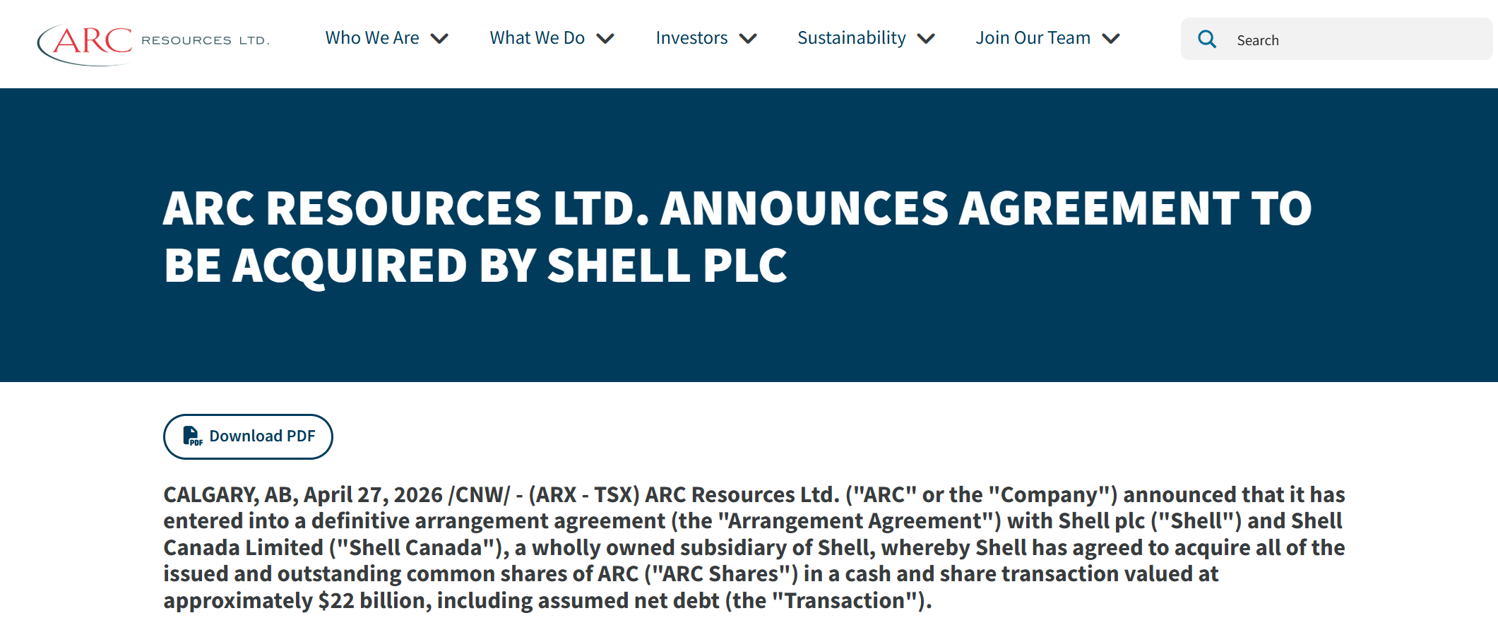 壳牌表示,该交易将实现两位数回报率,并将在2027年起提升每股自由现金流。根据交易条款,壳牌将向ARC股东支付每股8.20加元(约合6.03美元)现金,并同时提供每股0.40247股普通股作为对价。