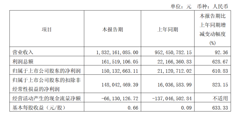 《科创板日报》4月28日讯(记者 吴旭光) 4月27日晚间,南亚新材发布公告,公司一季度实现营业收入18.32亿元,同比增长92.36%;归母净利润1.50亿元,同比增长610.83%,环比增长82%;扣非归母净利润1.48亿元,同比增长823.15%。