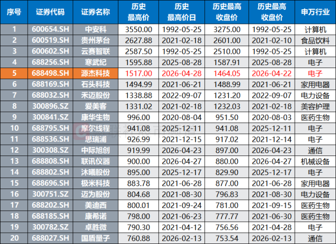 注:源杰科技今日股价重回第一(截至4月28日收盘)