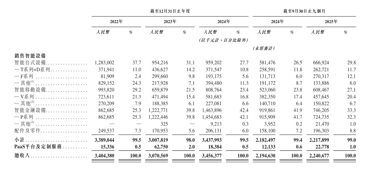 《科创板日报》记者注意到,2023年至2025年前三季度,商米科技营业收入分别为30.71亿元、34.56亿元和22.4亿元。目前来看,智能设备销售仍为商米科技贡献99%以上营收,PaaS等软件服务虽增速达87.7%,但体量尚小。