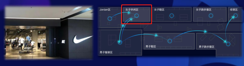 图| 百丽国际线下门店女子休闲区顾客动线轨迹图