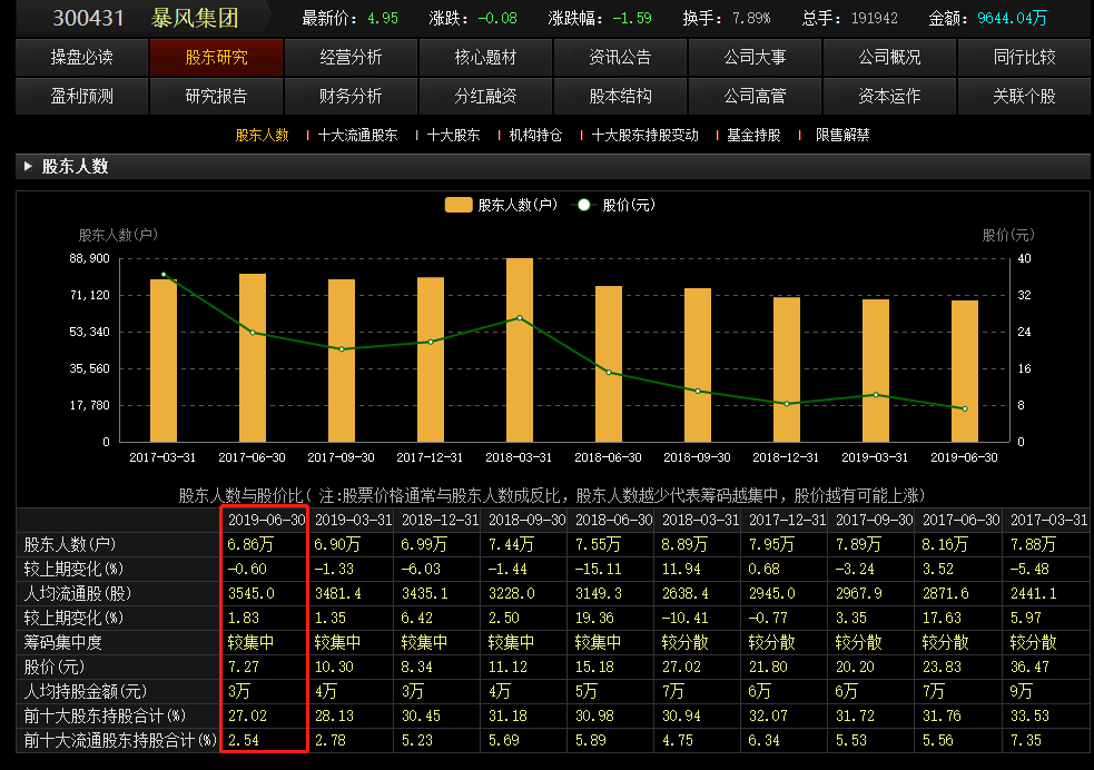 资料显示,截至今年二季报,暴风集团股东户数为6.86万。