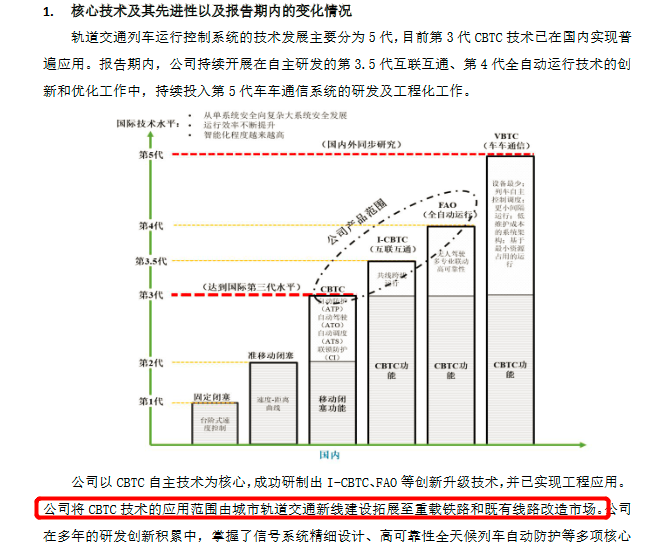 值得注意的是,公司在半年报中指出,报告期内,除了3个地铁信号系统项目(均为FAO项目)外,公司还中标了1个重载铁路项目,新增项目中标总金额11.82亿元,同时,公司将核心技术CBTC技术的应用范围由城市轨道交通新线建设拓展至重载铁路和既有线路改造市场。