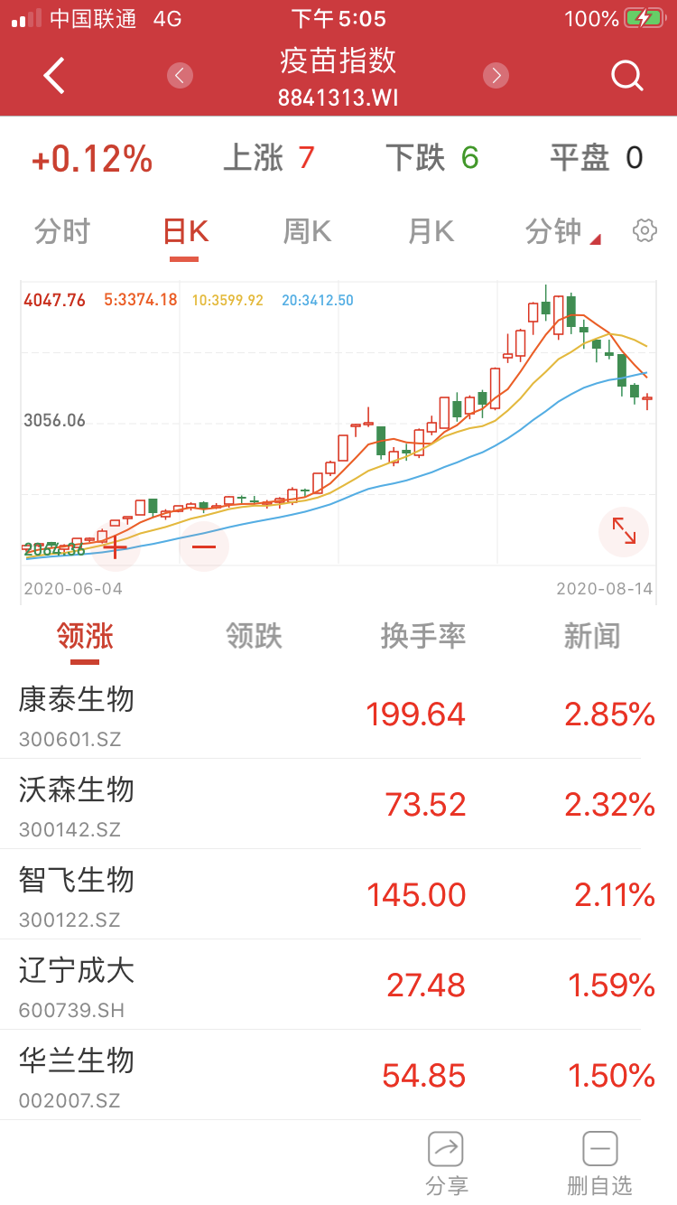 不过,从最近几天起,行情开始有所逆转,在8月6日~13日期间,A股疫苗指数连续6个交易日下跌,累计跌幅超过20%。受此影响,此前偏多的市场情绪渐渐转为谨慎理性。