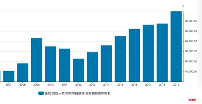 据Wind行业数据,2019年我国视网膜脱离和断裂出院人数为6.97万人。