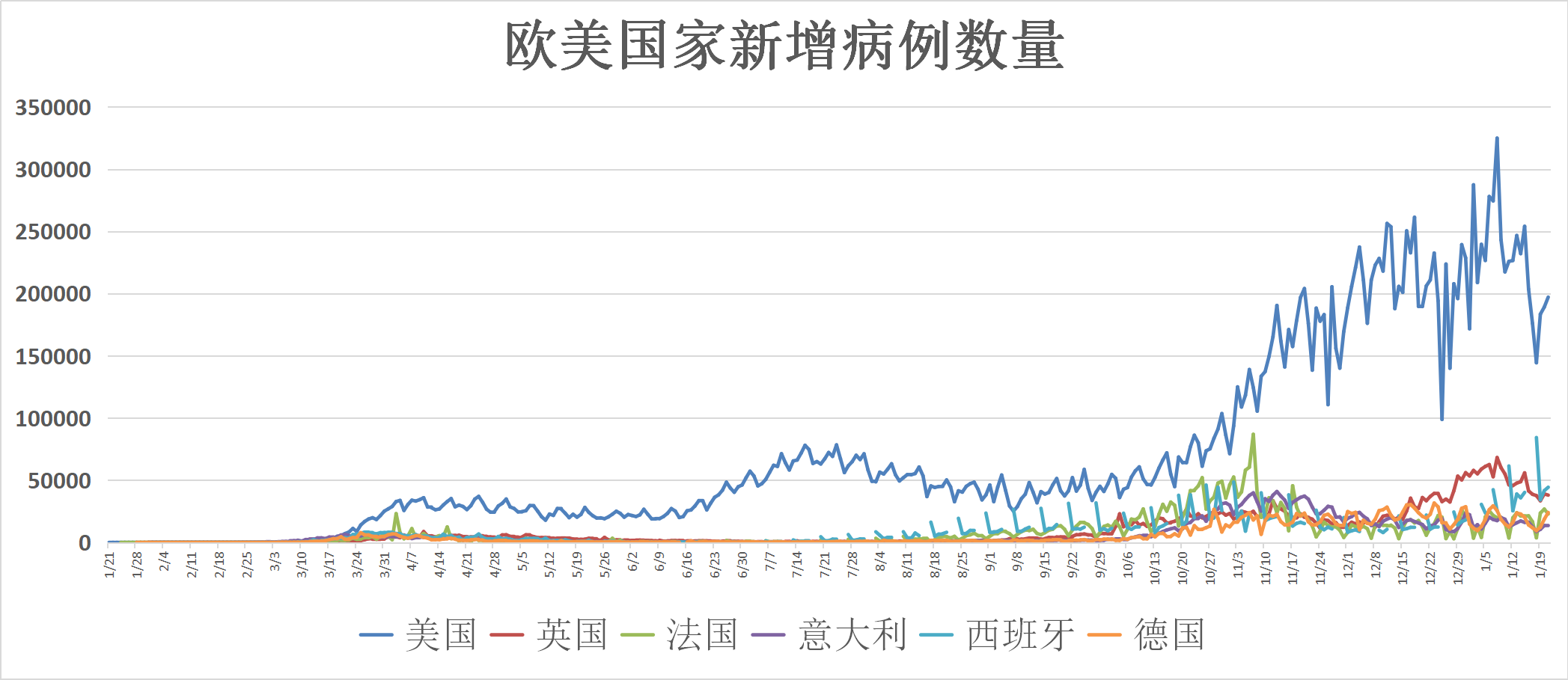 以下为相关国家每日新增确诊病例走势: