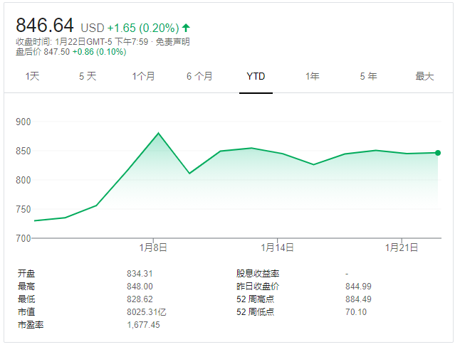 平均而言,接受FactSet调查的分析师对特斯拉的目标价为525美元, 这个目标价均值较该股上周五收盘价846.64美元低约37%。