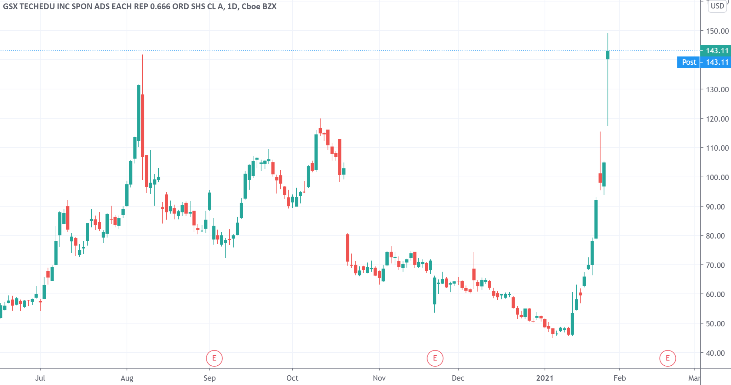 (跟谁学近三周涨三倍,来源:TradingView)