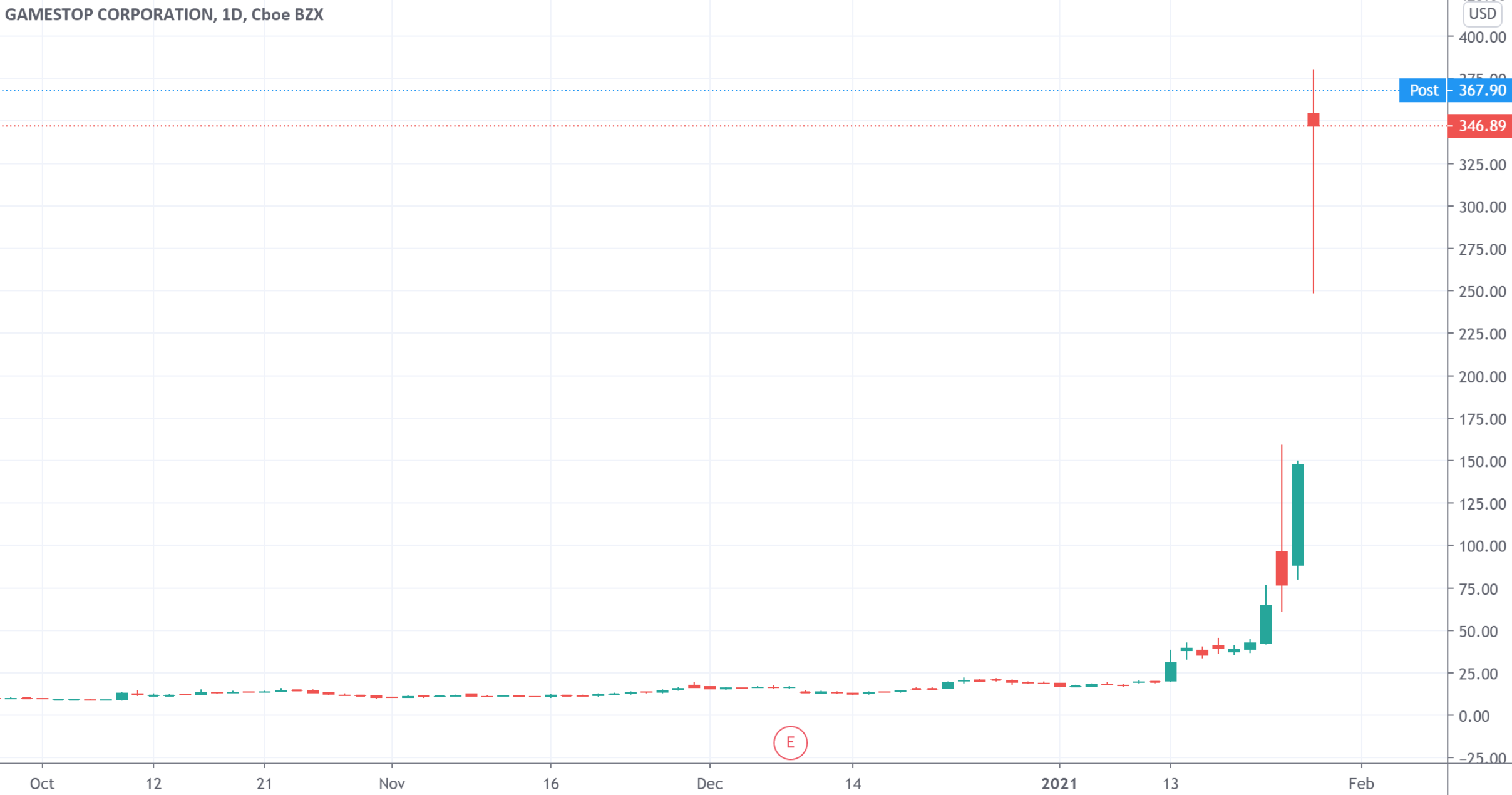 财联社(上海,编辑 史正丞)讯,当地时间周三,近来被视为“股吧”散户对抗华尔街知名基金主战场的游戏驿站(GME)再度大幅上涨,公司市值一度突破260亿美元,年初至今已经上涨19倍。截至周三收盘,公司股价大涨134.84%,报347.51美元。