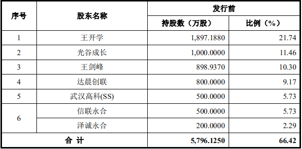 几家机构股东可谓实力雄厚,且持仓比例可观,光谷成长持有1000万股,占比11.46%;达晨创联持有800万股,占比9.17;武汉高科持有500万股,占比5.73%。