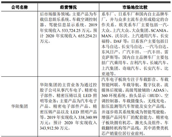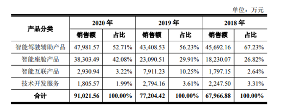 招股书显示,德赛西威是国内车载电子的研制、销售龙头企业,国际领先的汽车电子企业之一,公司主要产品为车载信息娱乐系统、车载空调控制器、驾驶信息显示系统,其2020年预计实现收入65.23亿元;