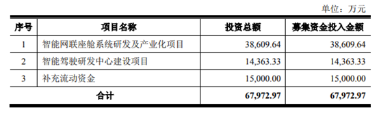 本次科创板IPO,远峰科技拟募集6.80亿元,投向智能网联座舱系统研发及产业化项目、智能驾驶研发中心建设项目和补充流动资金。