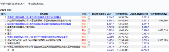 数据显示,基本养老保险基金八零四组合已新进天合光能前十大流通股东名列,为公司第四大股东,持有336万股。
