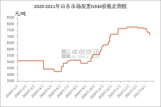 火爆的下游需求直接拉动了炭黑价格上涨,卓创资讯的统计数据显示,今年一季度,炭黑市场价格整体维持高位运行,进入4月份,炭黑价格出现了较为明显下滑。以N330品种炭黑为例,一季度价格基本维持7600元/吨左右,较去年同期增长近50%。