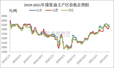 炭黑价格走高的同时,作为炭黑生产主要原材料的煤焦油价格虽然也有上涨,但相对稳定。数据显示,一季度以来,山东、陕西和河北等煤焦油主要产区的市场价格维持在2800元/吨-3300元/吨,与炭黑的价差较四季度继续拉大。