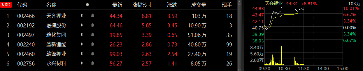 《科创板日报》(上海,研究员 思坦)讯,周三(28日)早盘,A股锂电池板块开盘大涨,其中锂资源相关个股较为强势,天齐锂业一度涨停,融捷股份、雅化集团等同样涨幅靠前。