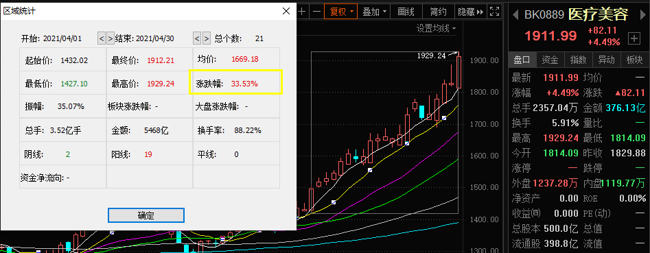 财联社4月30日讯,2021年4月的医美板块正在与白酒争夺“大消费之王”的桂冠。4月医美板块累涨33.5%(白酒板块仅为11%),不仅大幅跑赢沪深300,且板块内部分个股表现已出现了分化,龙头持续走高。