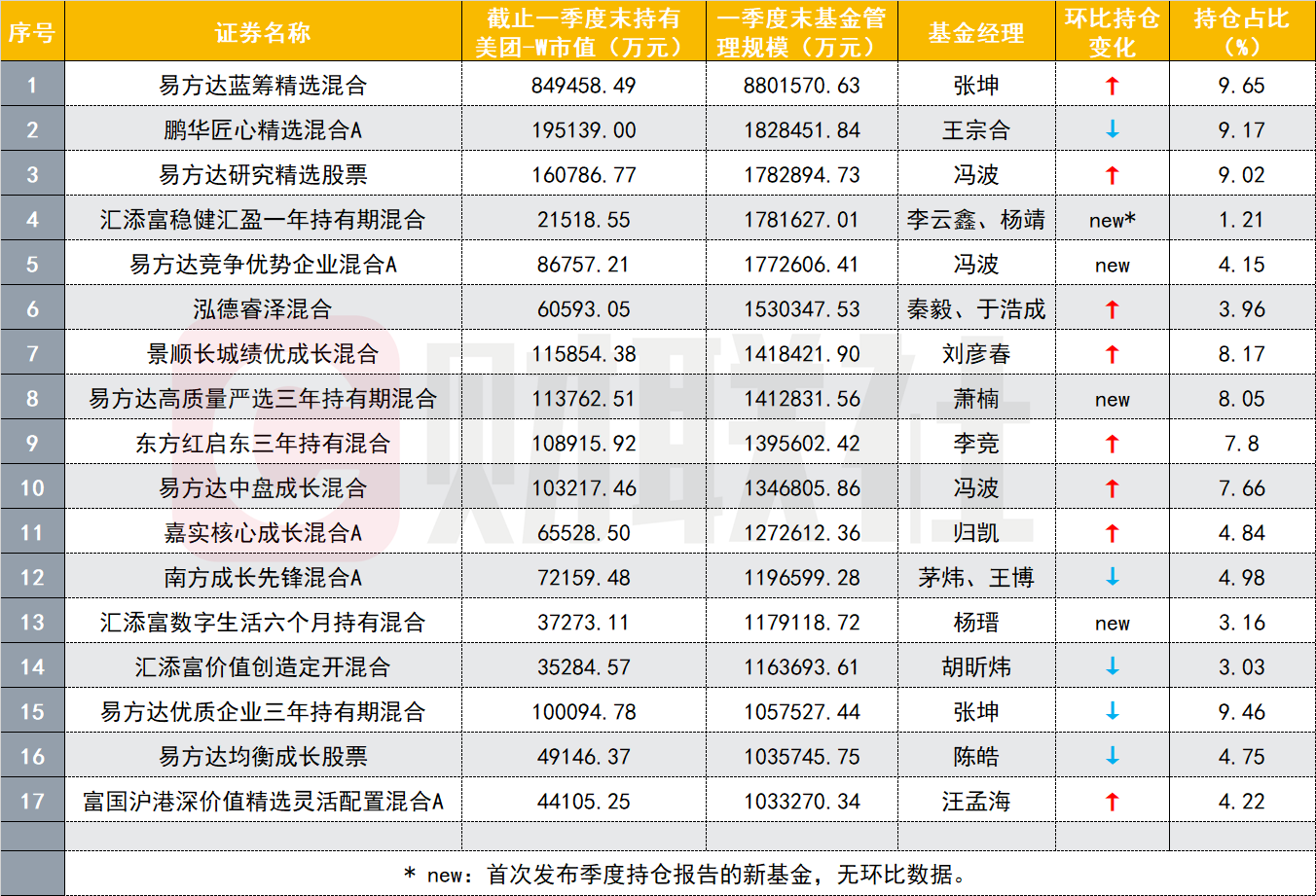 2021年一季度末十大重仓股中出现美团-W的“百亿基金”