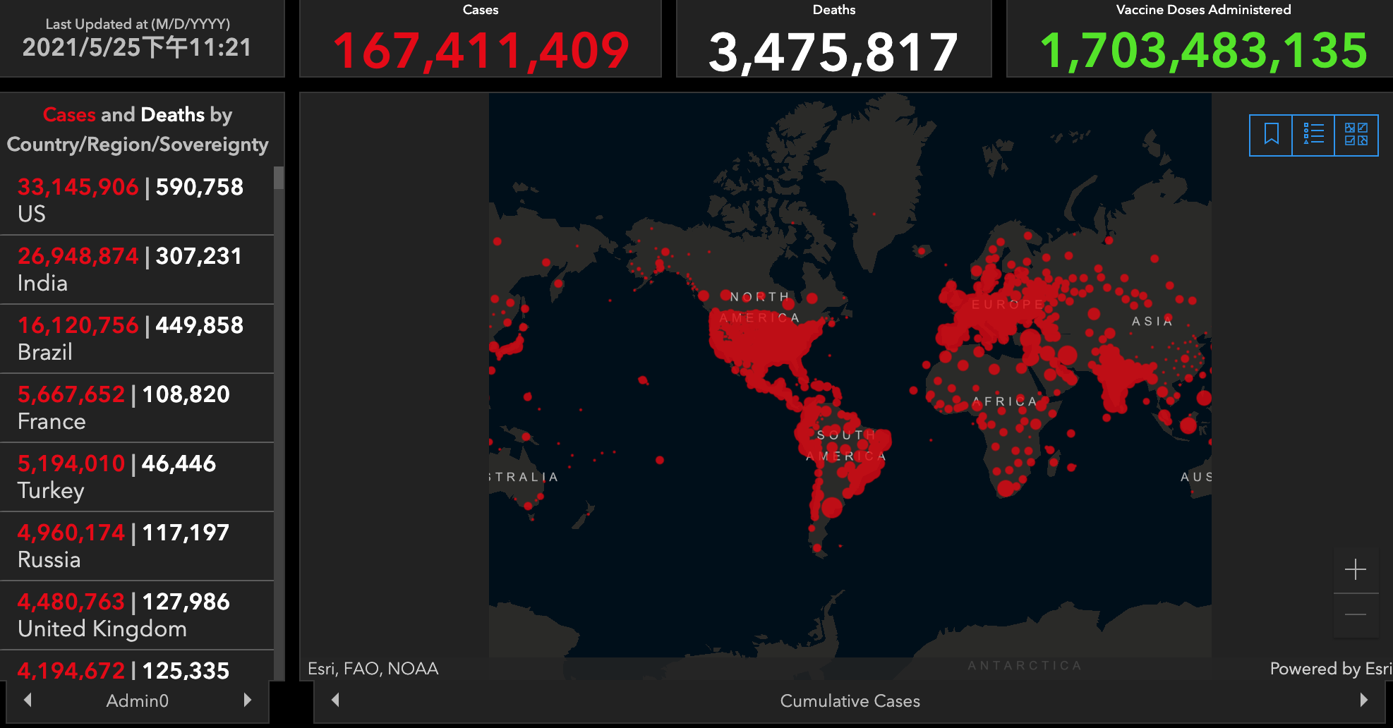 (全球疫情概览,来源:约翰斯·霍普金斯大学)