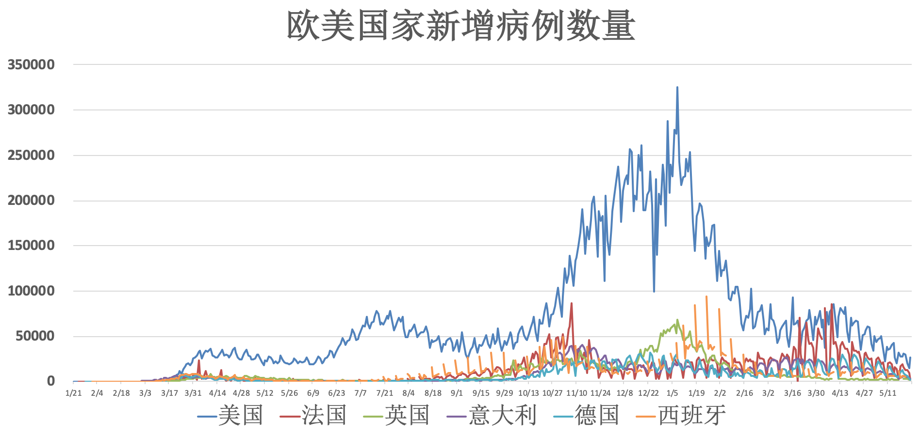 欧洲疫情较高峰期整体好转,不过部分国家确诊人数仍维持高位。截至发稿,法国累计确诊5,667,652例、英国4,480,763例、意大利4,194,672例、西班牙3,647,520例、德国3,611,763例。
