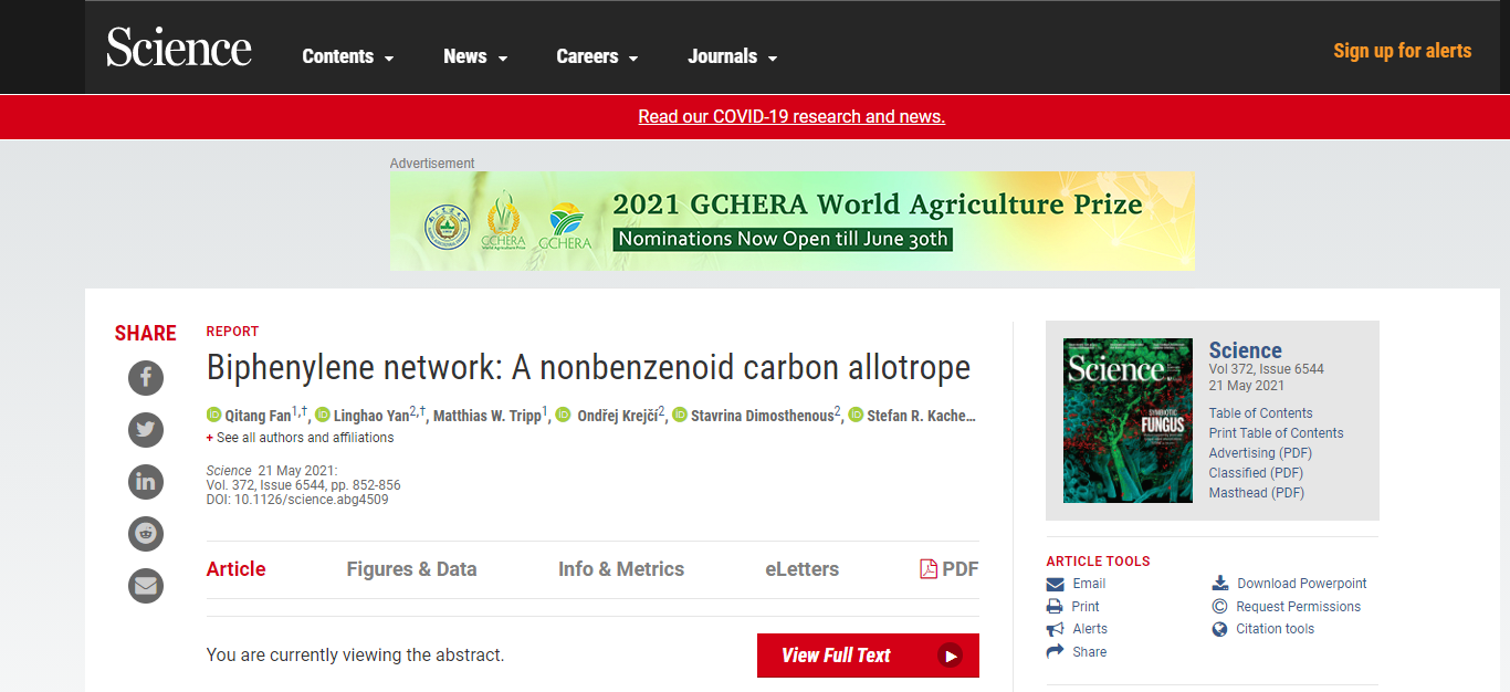 目前,研究小组正在努力生产更大的材料薄片,以便进一步探索其应用潜力。然而,Liljeroth教授指出,“我们相信这种新的合成方法将导致发现其他新的碳网络”。