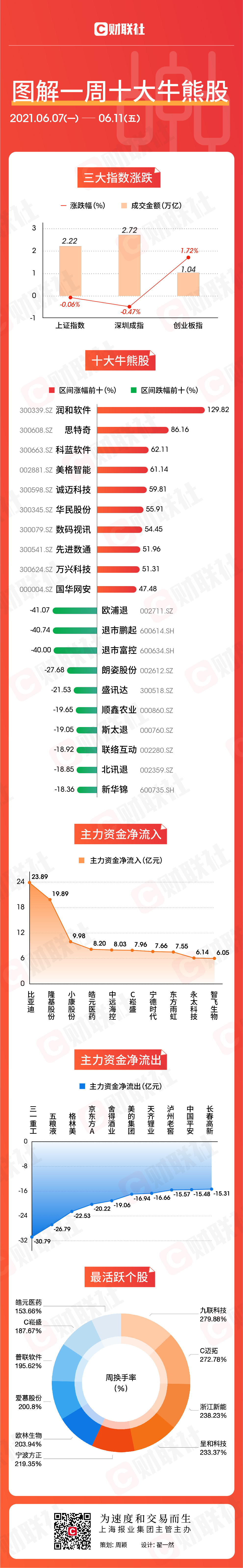 ①本周A股三大指数涨跌不一,创业板指周跌2.26%;