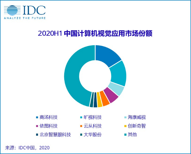 值得一提的是,商汤科技在计算机视觉市场份额居首,遥遥领先。