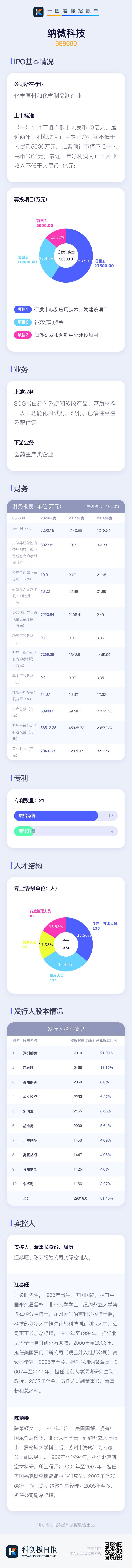 《科创板日报》6月18日讯,纳微科技即将登陆科创板。公司主营业务为高性能纳米微球材料研发、规模化生产、销售及应用服务,为生物医药、平板显示、分析检测及体外诊断等领域客户提供核心微球材料及相关技术解决方案。
