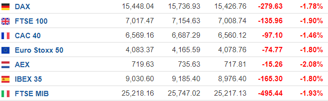 财联社(上海,编辑 史正丞)讯,受到周五盘前时段圣路易斯联储主席布拉德鹰派讲话影响,原本就处于高度紧张的美股市场开盘后直线下行,跌幅一度均超1%。受到美股走势拖累,欧洲市场周五收盘跌幅均接近2%。