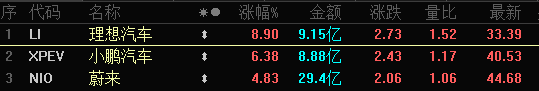 投资者的乐观情绪已经反映在行情上,上周五美股三大指数集体收跌,而中概新能源车逆市走强,理想汽车涨超8%,小鹏汽车涨超6%,蔚来涨超4%。