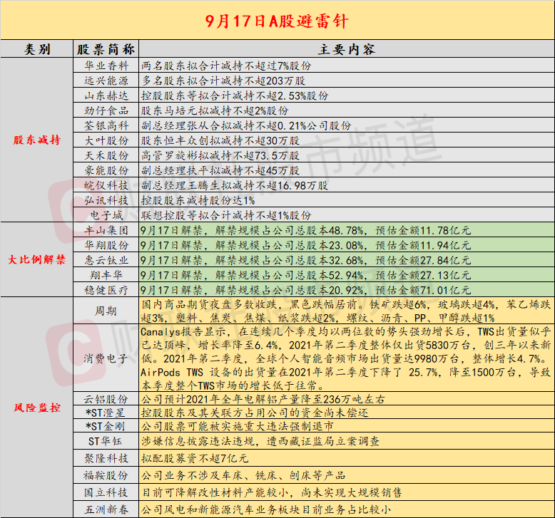 导读:1、多家基金公司证实监管在查风格漂移而违约基金产品,部分产品被要求调仓;2、云铝股份预计2021年全年电解铝产量降至236万吨左右;3、国内商品期货夜盘多数收跌 铁矿主力合约跌超6%;4、*ST澄星控股股东及其关联方占用公司的资金尚未偿还;5、生态环境部坚决遏制“两高”项目盲目发展,严禁新增钢铁冶炼产能;6、美股三大指数基本平收,热门中概股多数收跌。