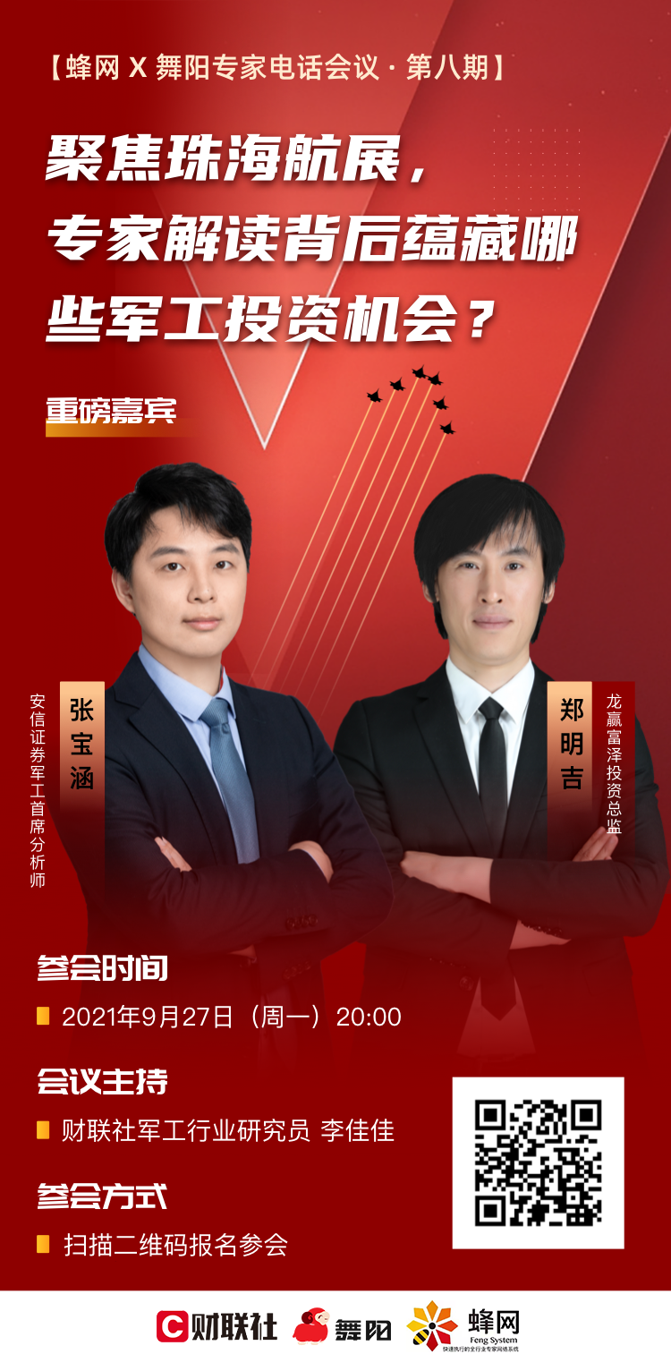 财联社蜂网专家在线与舞阳联合特邀龙嬴富泽投资总监郑明吉、安信军工首席分析师张宝涵两位业内专家,为您解读军工行业最新变化,珠海航展背后蕴藏的军工投资机会。