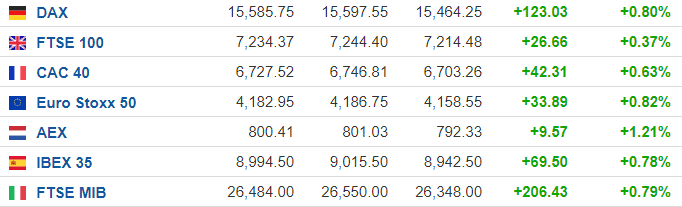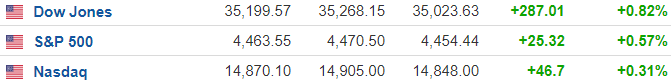 随着财报季持续出现利好消息,投资者重新涌入潜在受益于经济重启的板块,欧美交易时段主要股指集体上涨。
