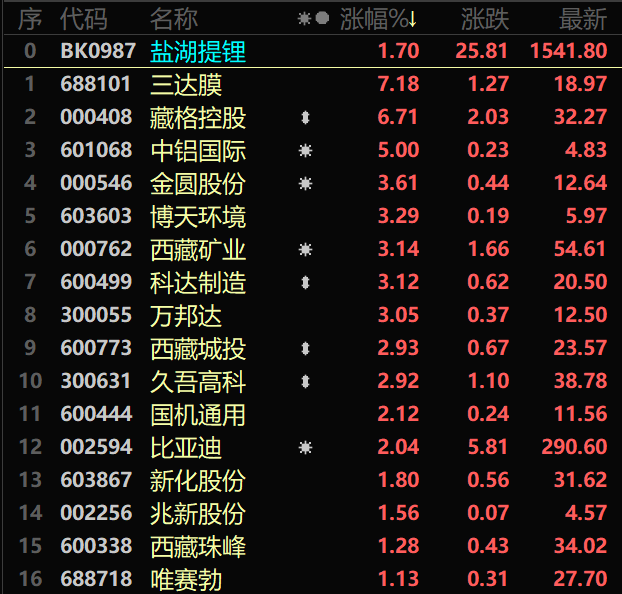 对于受益的主线和标的,光大证券指出,锂精矿价格处于高位仍利好锂资源自给率高的企业。建议关注天齐锂业、融捷股份、赣锋锂业;青海建设世界级盐湖产业基地被再度提及,国内自主可控的盐湖资源具有重大战略意义,建议关注盐湖股份、科达制造、蓝晓科技。