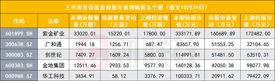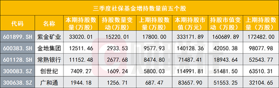 具体来看,持股数量居前三的个股分别是紫金矿业、金地集团、常熟银行,这也是目前社保基金在三季度增持最多的3只个股;社保基金三季度减持最多的个股则是旗滨集团、藏格控股、新洋丰。