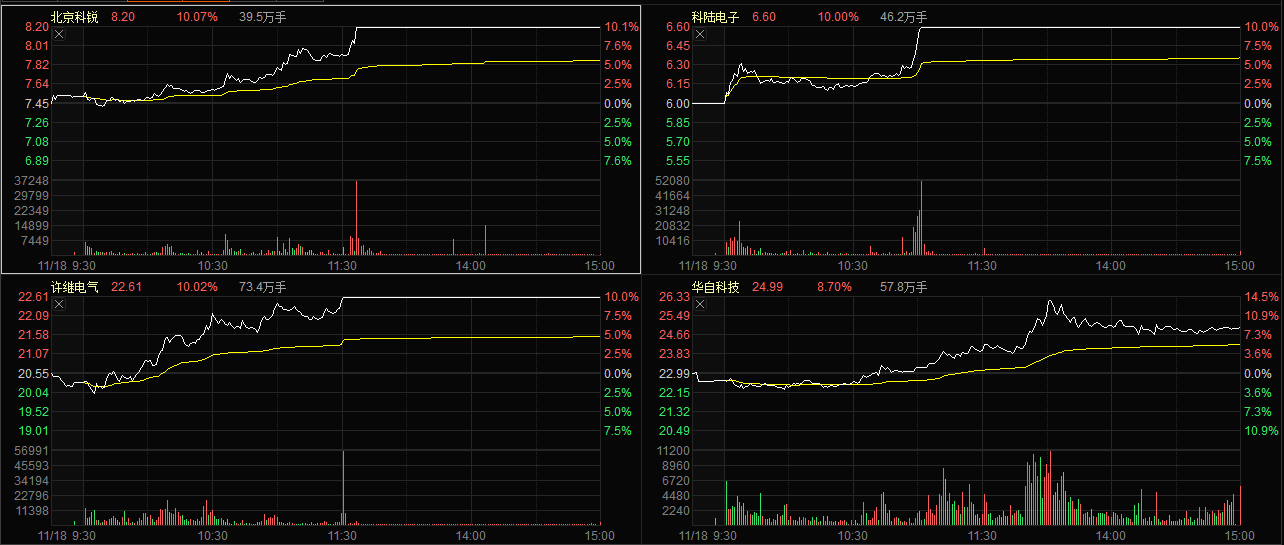 消息发布后,A股充电桩板块多只个股涨停,包括北京科锐、许继电气、科陆电子。