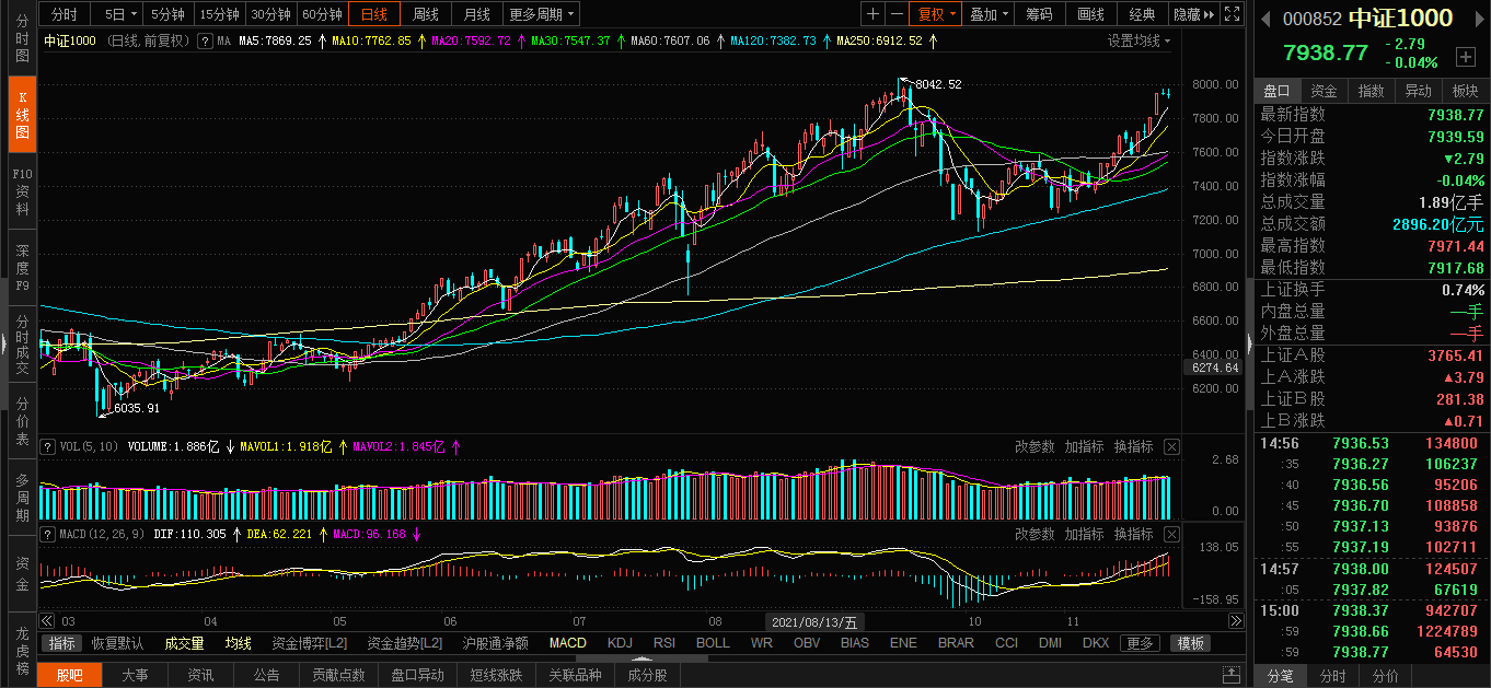 指数方面,沪指小幅收涨,盘中一度回到3600点,创业板指在周一突破3500点后连续两天小幅回落,中证1000指数在阶段新高位置震荡。