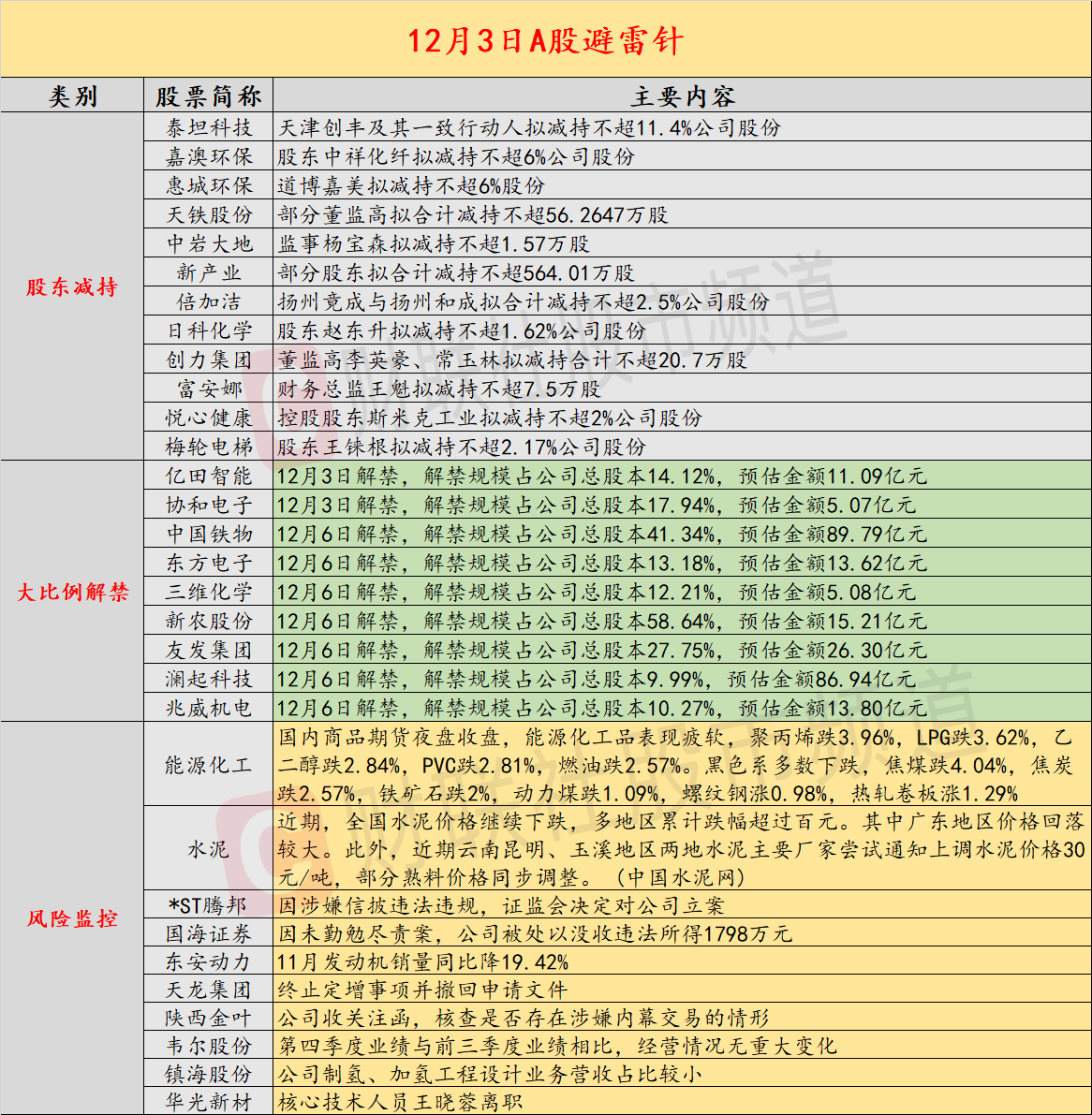 3、泰坦科技:天津创丰及其一致行动人拟减持不超11.4%公司股份。