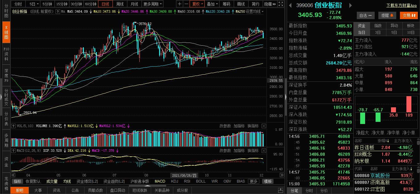 指数方面,创业板指跌超2%,回补此前的缺口。沪指表现相对较强,早盘在3600点上方震荡,午后回落收跌0.5%。
