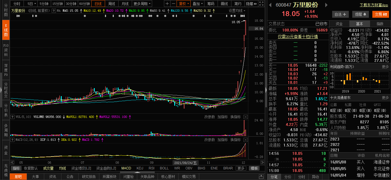 个股方面,万里股份6连板领涨两市,京城股份4连板。St板块继续涨停潮,ST实达、ST环球、ST宏图、ST索菱、ST赫美、ST凯乐等多只高连板。