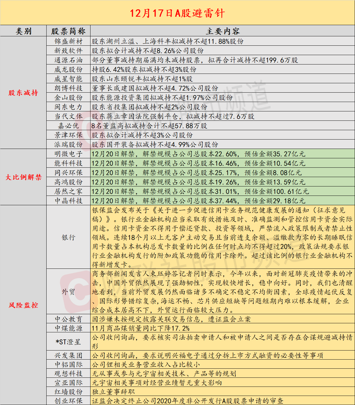 2、银保监会发布关于《关于进一步促进信用卡业务规范健康发展的通知(征求意见稿)》。银行业金融机构应当采取有效措施及时、准确监测和管控信用卡资金实际用途。信用卡资金不得用于偿还贷款、投资等领域,严禁流入政策限制或者禁止性领域。连续18个月以上无客户主动交易且当前透支余额、溢缴款为零的长期睡眠信用卡数量占本机构总发卡数量的比例在任何时点均不得超过20%,政策法规要求银行业金融机构发行的附加政策功能的信用卡除外。超过该比例的银行业金融机构不得新增发卡。