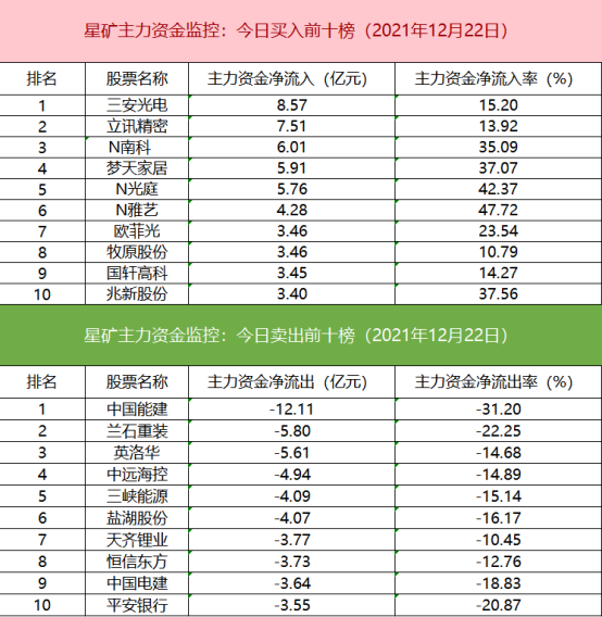 今日主力资金流出前十的个股中绿电及新能源相关个股较多,其中中国能建主力资金净流出居首,天齐锂业、盐湖股份持续净流出。