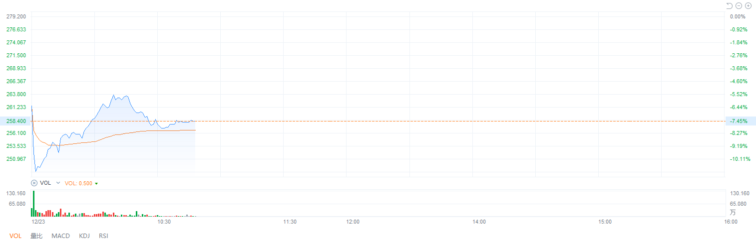 截止发稿时,京东报258.4港元,跌7.45%,腾讯报464.8港元,涨4.7%。