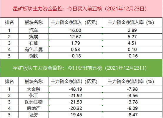 板块资金流出方面,大金融板块主力资金持续流出居前,此外房地产板块主力资金也持续流出。