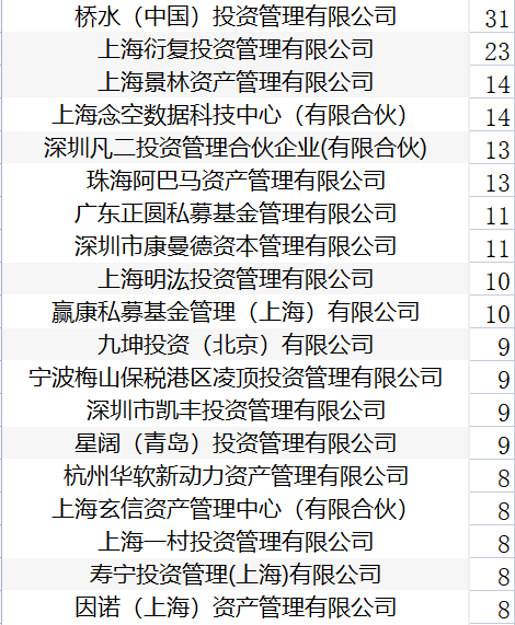 尽管年底的股市表现并不惊艳,但各家私募机构的备案的积极性仍十分高涨,甚至有些机构摆出了一种“赶场冲刺”的架势。这一点,从上榜的私募名单中便能可见一斑。