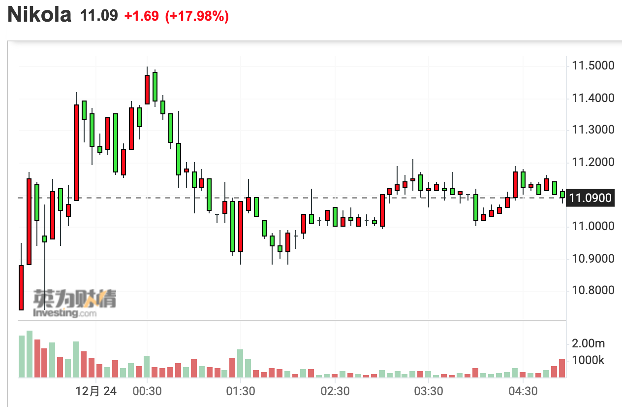 财联社(上海,编辑 夏军雄)讯,电动车新贵Nikola周四盘中一度大涨20%,此前该公司宣布向南加州的Total Transportation Services交付了其首辆Tre电动卡车。Nikola周四收涨近18%。