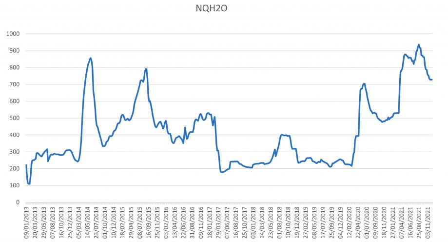 该期货以纳斯达克韦莱斯加利福尼亚水指数(NQH2O)作为标的进行交易结算,该指数根据加州五个最大、交易最活跃的水市场交易量加权平均数,确定加州水权的每周基准现货价格。今年以来,由于加州干旱持续,该指数涨幅一度接近翻倍。
