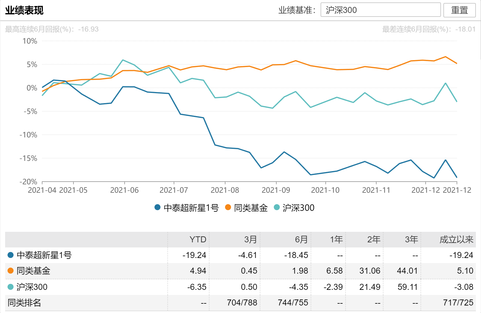 近日,由姜超管理的中泰超新星1号更新净值,截至12月20日,该产品的最新净值为0.8076,成立以来的回报为-19.24%,在同类725只产品中排名717名。