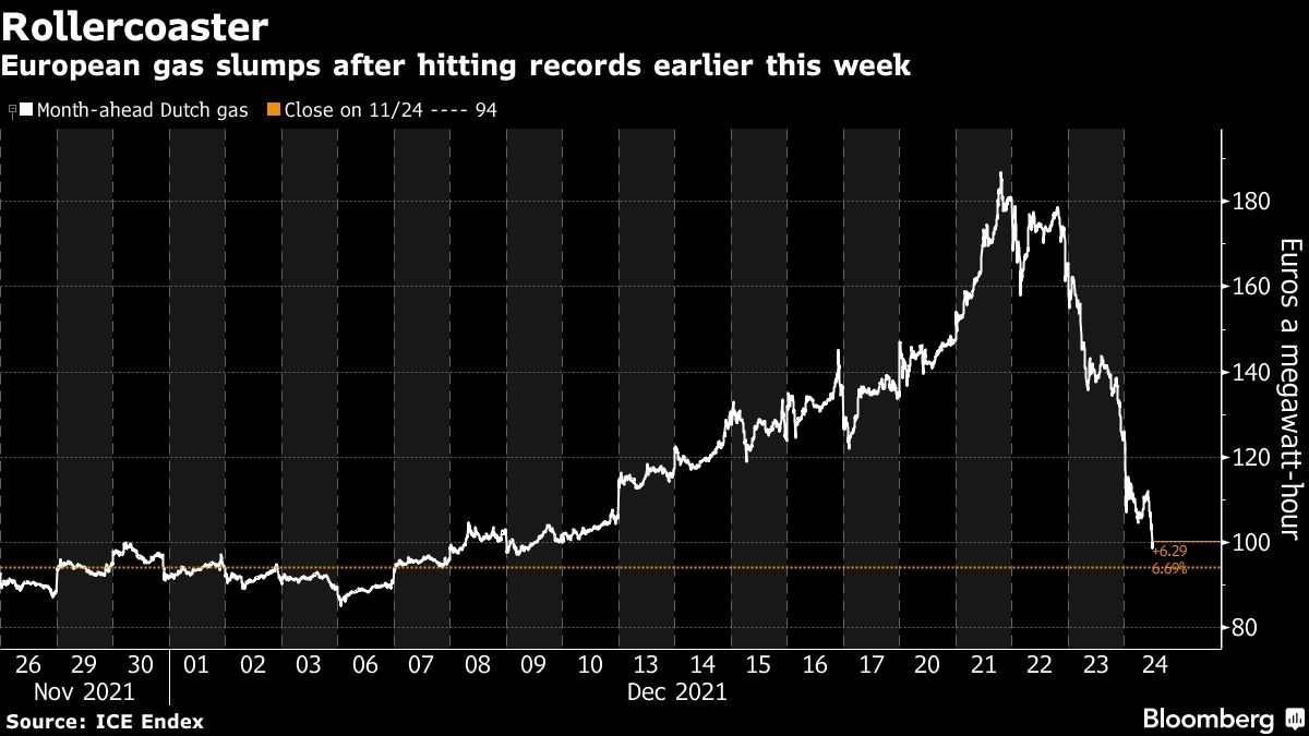 基准的荷兰近月天然气价格上周连跌三天,两周来首次跌破100欧元/兆瓦时至98.58欧元/兆瓦时,周五单日跌幅高达26%,周四跌幅则为23%。而仅仅几天之前,荷兰近月液化天然气价格刚刚创下历史新高,一度升破180欧元/兆瓦时。