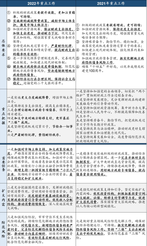 财联社(北京,记者 张晓翀)讯,周一全国财政工作视频会议召开,部署2022年财政工作。市场人士指出,明年财政收入端将有更大力度的减税降费,支出端将进行力度、进度和结构的优化,力度上要扩大有效投资和内需推动稳增长,进度要发力靠前和适度超前基建,结构侧重民生、科技与新基建;赤字和债务规模或有所扩大。